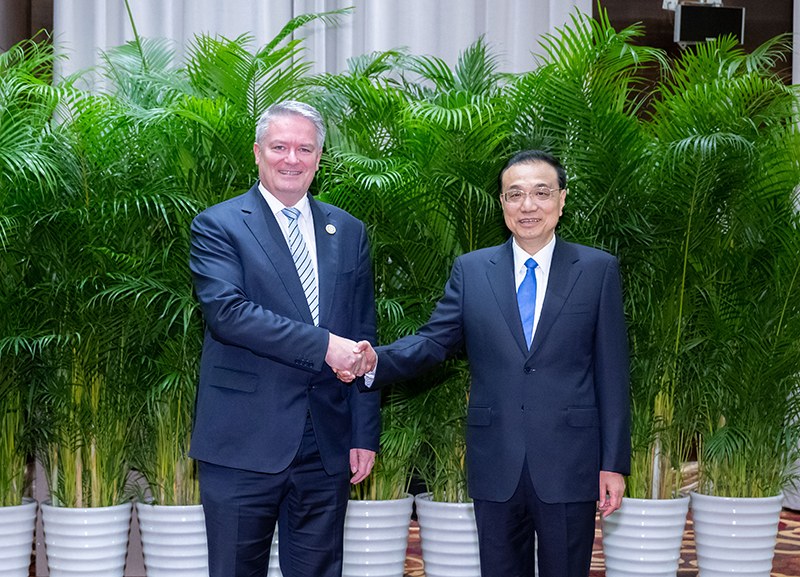 O primeiro-ministro chinês, Li Keqiang, se reuniu na quinta-feira com o secretário-geral da Organiza??o para a Coopera??o e Desenvolvimento Econ?mico (OCDE), Mathias Cormann, que esteve na China para a sétima Mesa Redonda "1+6", na cidade de Huangshan, Província de Anhui, leste da China.
