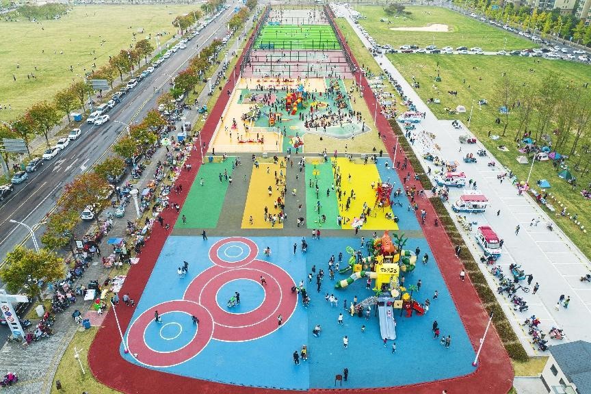 A 22 de outubro de 2022, o parque de exercício e lazer do Parque Industrial Susu em Suqian, província de Jiangsu, estava repleto de gente aproveitando o fim de semana para fazer esportes e descansar.