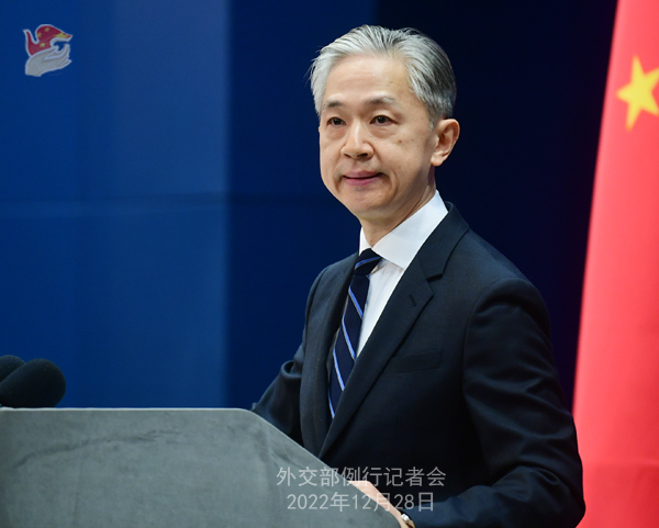O porta-voz Wang Wenbin fez as observa??es em uma entrevista coletiva diária em resposta a uma pergunta sobre o recente ajuste do país asiático na política para lidar com a Covid-19.