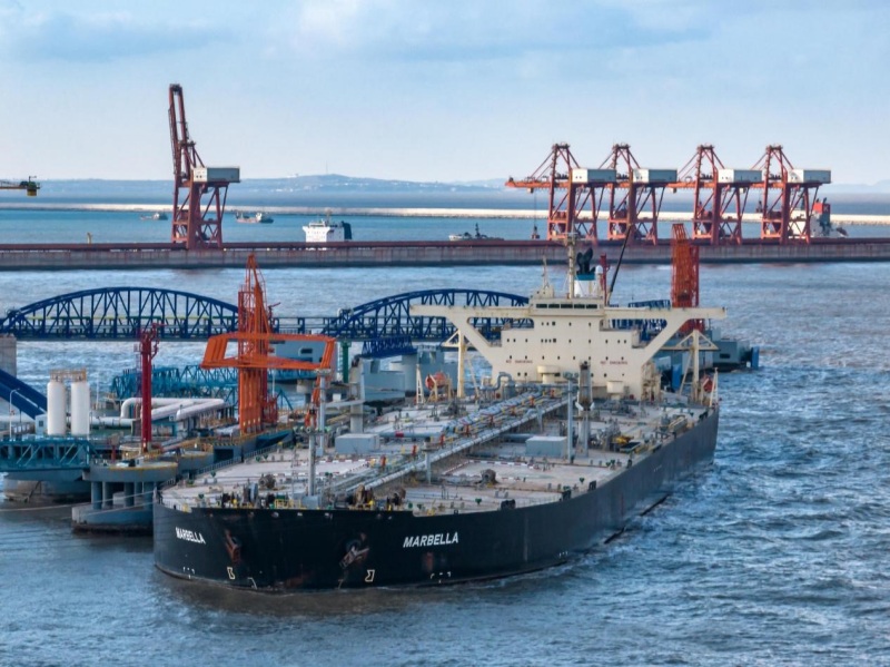 Um petroleiro descarrega por meio de um oleoduto no terminal de petróleo bruto do porto de Yantai, em Shandong, em 18 de dezembro de 2022. (Foto: Chao Zhang/Diário do Povo Online)