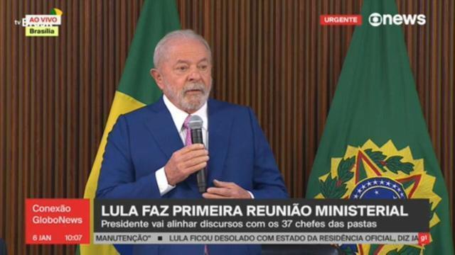 O presidente do Brasil, Luiz Inácio Lula da Silva, declarou nesta sexta-feira, na primeira reuni?o com todos os 37 ministros do seu gabinete, que o governo tem uma tarefa "árdua, mas nobre" e defendeu as boas rela??es com o Congresso, o respeito ao meio ambiente e à Constitui??o.
