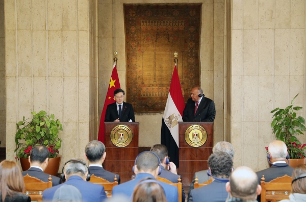 Ao se encontrar com a imprensa com seu homólogo egípcio, Sameh Shoukry, Qin falou sobre a política chinesa no Oriente Médio, dizendo que, quanto aos assuntos de foco da regi?o, a China encoraja os países regionais a buscar, através de diálogo e consulta, solu??es que atendam às realidades regionais, acomodem os interesses de todas as partes e sejam aceitáveis para todas as partes.