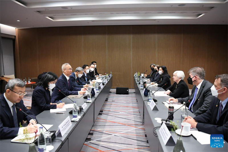 O vice-primeiro-ministro chinês, Liu He, também chefe do lado chinês para o diálogo econ?mico abrangente China-EUA, se reuniu com a secretária do Tesouro dos EUA, Janet Yellen, na quarta-feira em Zurique.