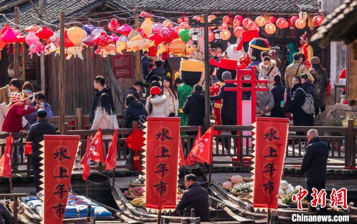 "Mercado do Festival da Primavera na água" aprimora atmosfera festiva em Zhejiang