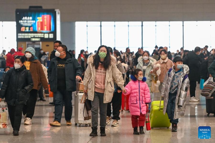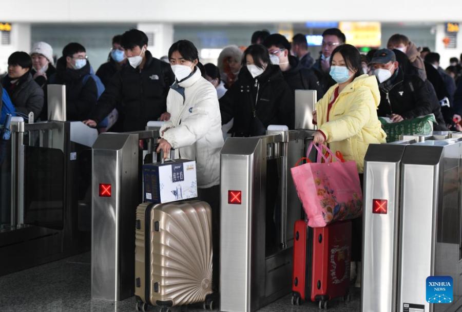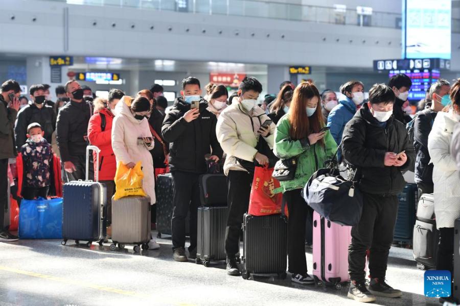 Passageiros na Esta??o Ferroviária Leste de Nanning, Regi?o Aut?noma da Etnia Zhuang de Guangxi, sul da China, em 27 de janeiro de 2023. (Xinhua/Lu Boan)
