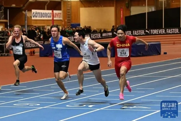 O velocista chinês, Su Bingtian, conquistou a medalha de ouro de 60 metros na competi??o masculina final no Grupo A na IAAF World Indoor Tour 2023, em Gothenburg, Suécia, com um resultado de 6:59, na quita-feira (2).