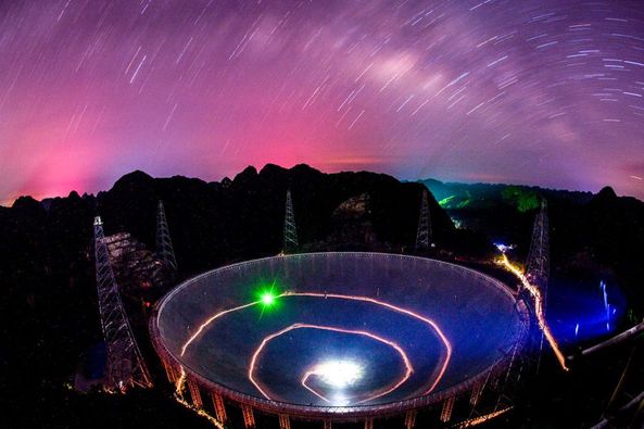 Também conhecido como o "Olho do Céu da China", o telescópio é localizado em uma depress?o cárstica naturalmente profunda e redonda na província de Guizhou, no sudoeste. Tem uma área de recep??o igual a 30 campos padr?es de futebol.