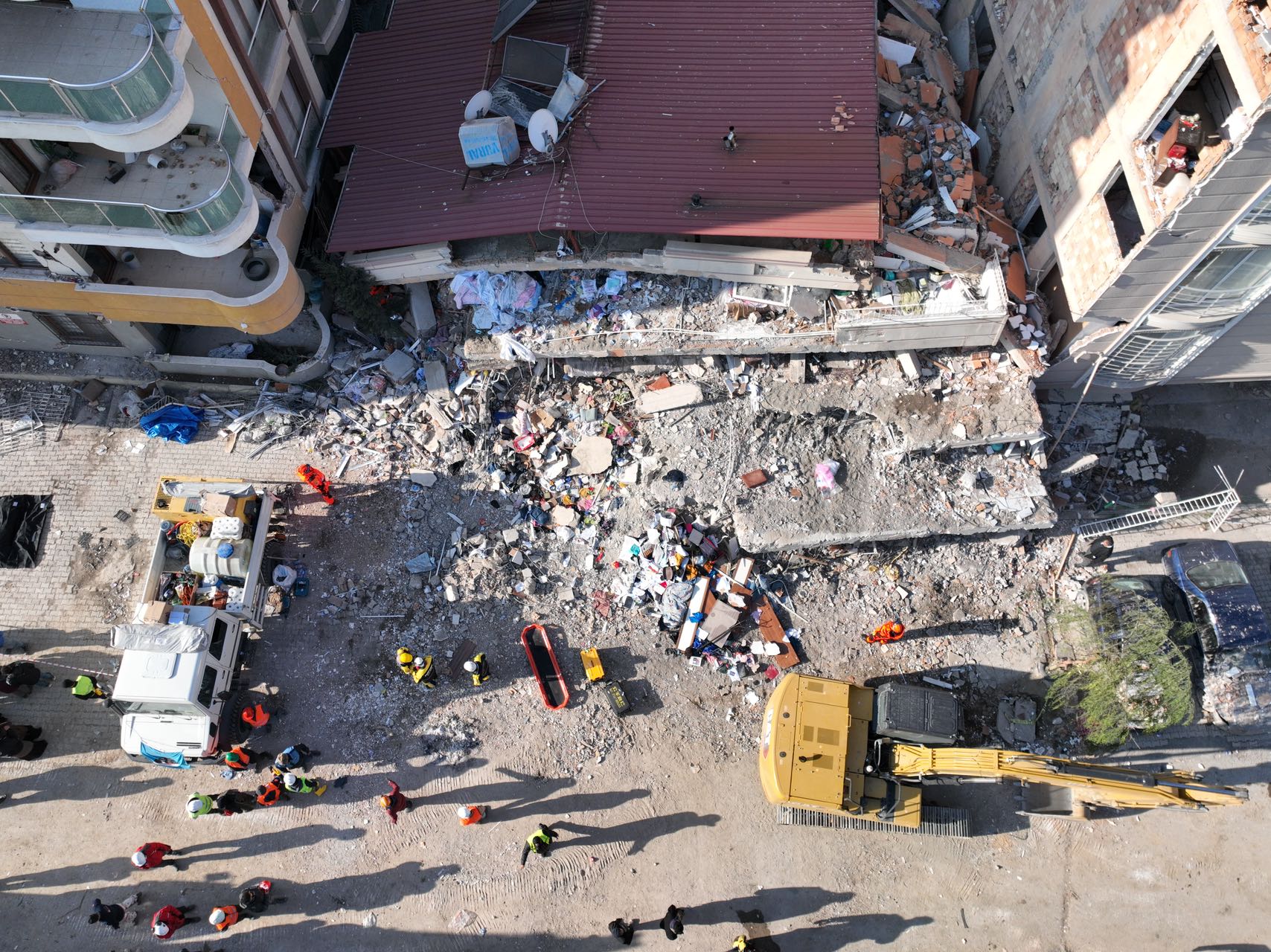 Equipe de resgate Ramunion e a equipe de buscas urbanas do exército turco resgataram com sucesso uma família de uma casa na cidade de Belen. Foto cortesia da equipe de resgate Ramunion