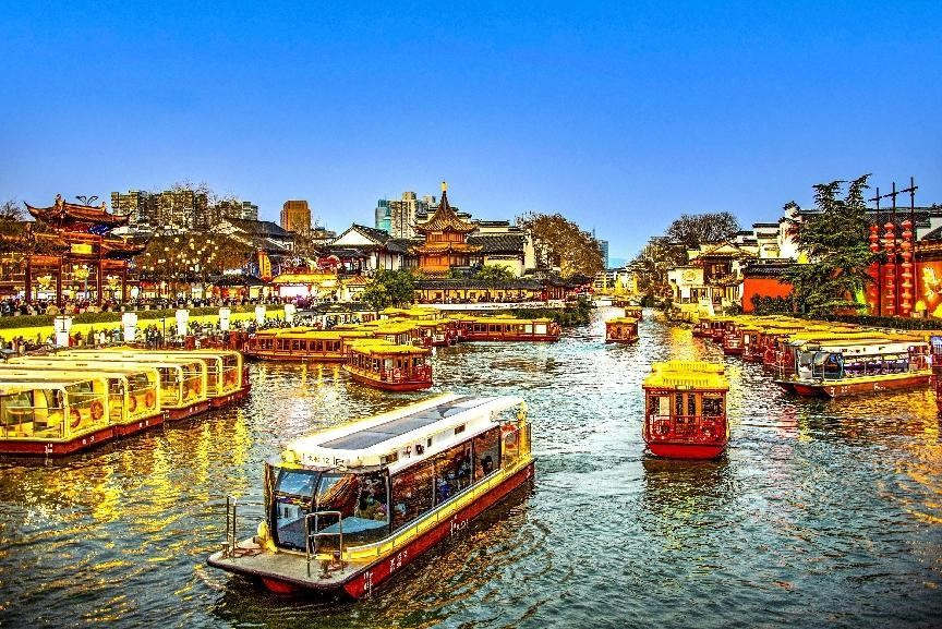 Turistas fazem um cruzeiro de barco ao longo do rio Qinhuai em Nanjing, província de Jiangsu, no leste da China, em 24 de janeiro de 2023. (Foto: Gu Changwang/Diário do Povo Online)