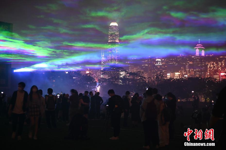 Um grande número de pessoas admirou a Aurora Borealis, uma instala??o de arte ao ar livre em grande escala do artista suí?o, Dan Acher, no Parque de Arte West Kowloon, na Regi?o Administrativa Especial de Hong Kong (RAEHK), na noite de segunda-feira (13).