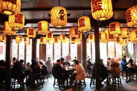 Clientes saboreiam comida local num restaurante em Nanjing, província de Jiangsu, em 24 de janeiro para comemorar o Ano Novo Chinês. (Foto: Liu Jianhua/China Daily)