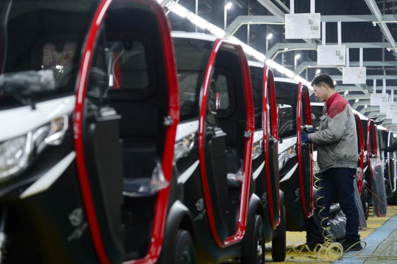 Um operário está trabalhando na linha de montagem de veículo de nova energia numa fábrica de automóveis em Zhumadian, província de Henan, em 8 de fevereiro de 2023. (Foto: Sun Kai, Diário do Povo Online)