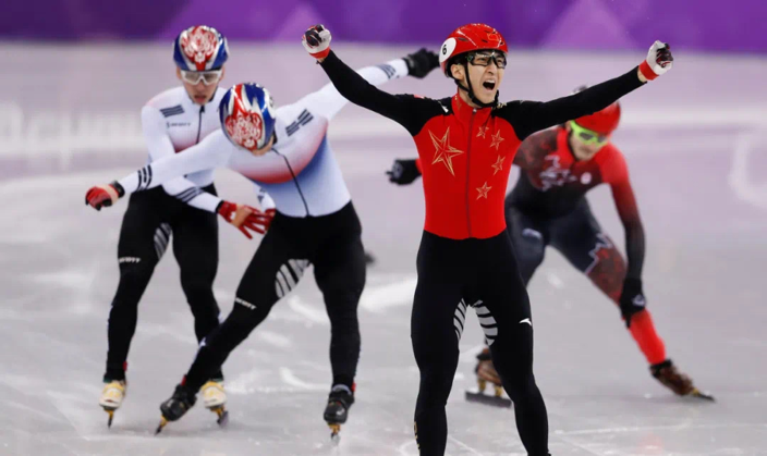 Wu Dajing venceu a final masculina de patina??o de velocidade em pista curta de 500m nos Jogos Olímpicos de Inverno de Pyeongchang, na Coreia do Sul, em 2018.