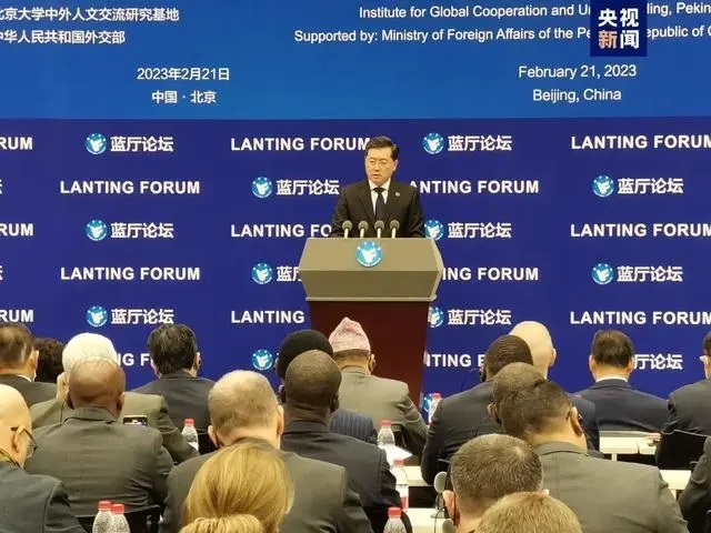Qin fez as observa??es ao dar um discurso na cerim?nia de abertura do Fórum Lanting sobre a Iniciativa de Seguran?a Global: Proposta da China para Resolver Desafios de Seguran?a, durante a qual a China lan?ou oficialmente "O Documento de Conceito da Iniciativa de Seguran?a Global".
