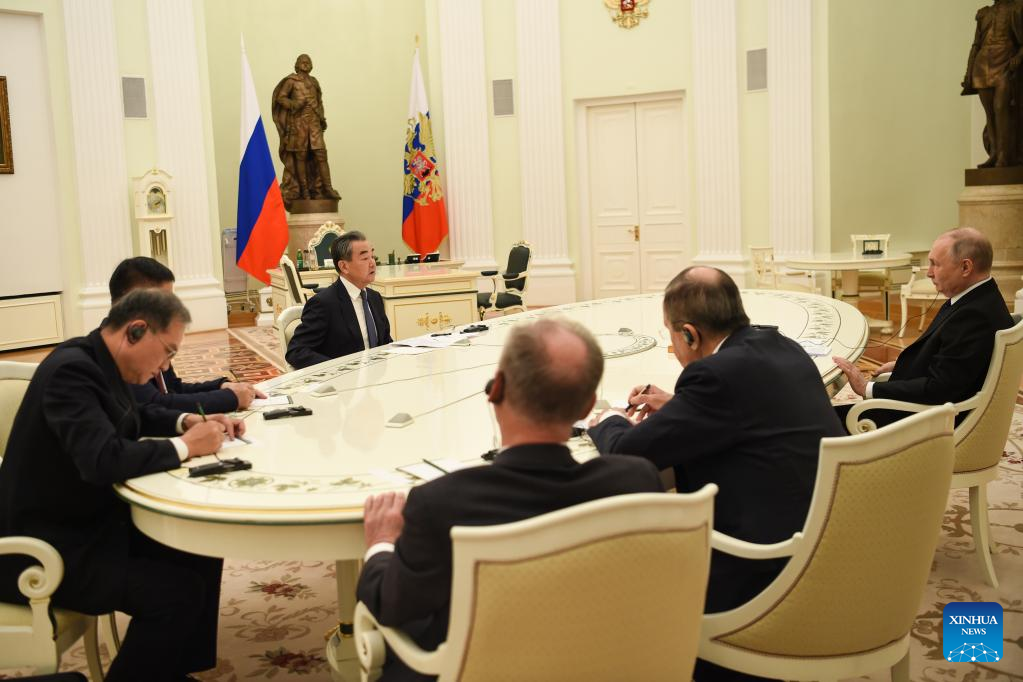 O presidente russo, Vladimir Putin, se encontrou com Wang Yi, membro do Bir? Político do Comitê Central do Partido Comunista da China (PCCh) e diretor do Escritório da Comiss?o de Rela??es Exteriores do Comitê Central do PCCh, em Moscou, Rússia, em 22 de fevereiro, 2023. (Foto: Xinhua)