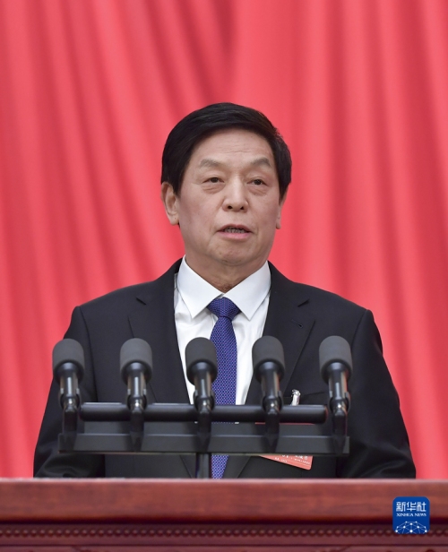Li Zhanshu, presidente do Comitê Permanente da 13a APN, apresentou o relatório em uma reuni?o plenária da primeira sess?o da 14a APN.