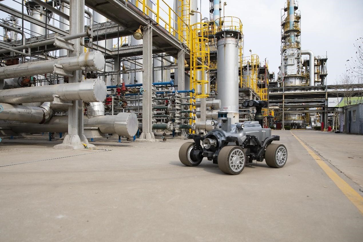 Localizado na fábrica da Aoxing Petrochemical Co., Ltd., na cidade de Dongying, província de Shandong, um rob? está realizando inspe??es diárias de seguran?a. Foto: Liu Yunjie, Diário do Povo Online