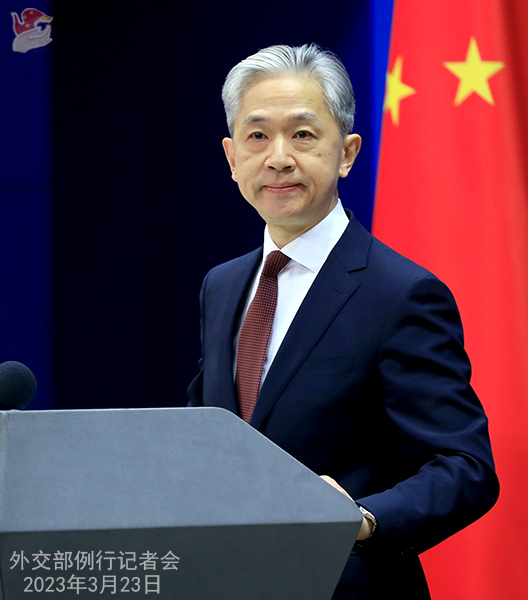 O porta-voz do Ministério das Rela??es Exteriores chinês Wang Wenbin fala numa conferência de imprensa regular em Beijing, em 23 de mar?o de 2023. (Foto: fmprc.gov.cn)