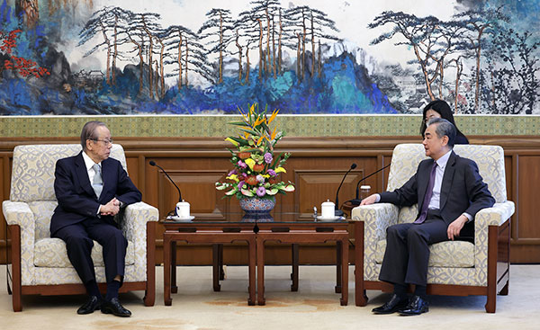 Wang Yi, diretor do Escritório da Comiss?o de Rela??es Exteriores do Comitê Central do Partido Comunista da China, reuniu-se com Yasuo Fukuda, ex-primeiro-ministro japonês e ex-presidente do Fórum de Boao para a ásia, em Beijing na última sexta-feira.