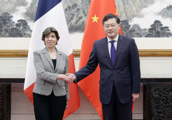 O conselheiro de Estado e ministro das Rela??es Exteriores da China, Qin Gang, reuniu-se na quarta-feira com sua homóloga francesa, Catherine Colonna, que acompanha a visita do presidente francês Emmanuel Macron à China.