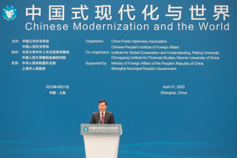 O conselheiro de Estado e ministro das Rela??es Exteriores da China, Qin Gang, fez um discurso de abertura na cerim?nia de abertura do Fórum Lanting sobre a Moderniza??o Chinesa e o Mundo em Shanghai nesta sexta-feira, apontando que uma China se movendo em dire??o à moderniza??o é um impulso para a for?a pela paz e justi?a.