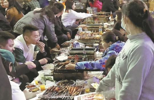 As pessoas aproveitam o churrasco em Zibo, província de Shandong, no domingo. A cidade, anteriormente menos conhecida, tornou-se um ponto turístico famoso depois que os vídeos de seu churrasco se tornaram virais na internet. (Foto: Cao Boyuan/China Daily)