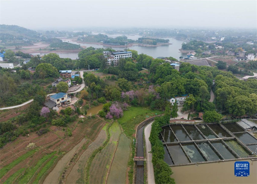 Durante a esta??o de plantio da primavera, no condado de Luxian, província de Sichuan, sudoeste da China, o canal de desvio de água através das colinas e das terras agrícolas, conhecido como "rio artificial do céu", vem desempenhando um papel importante para a irriga??o.