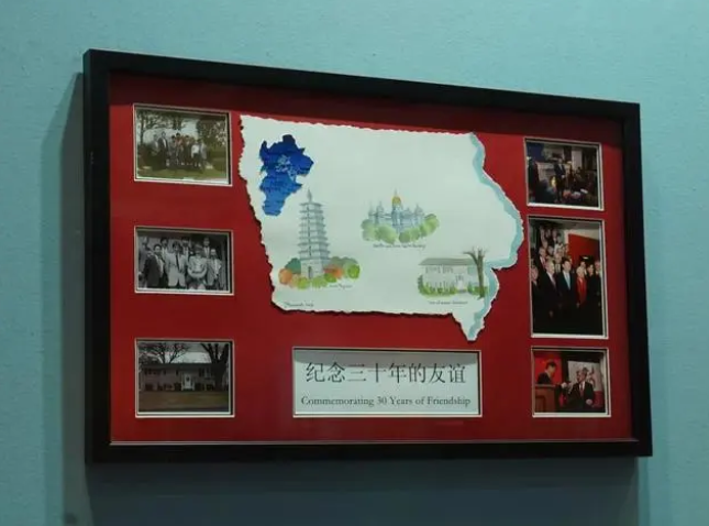 O porta-retrato “Comemorando Trinta Anos de Amizade” foi presenteado a Xi Jinping por Tom Dvo?ek, um amigo de Iowa, EUA, em 2015. (Fotografia / Hu Chang)
