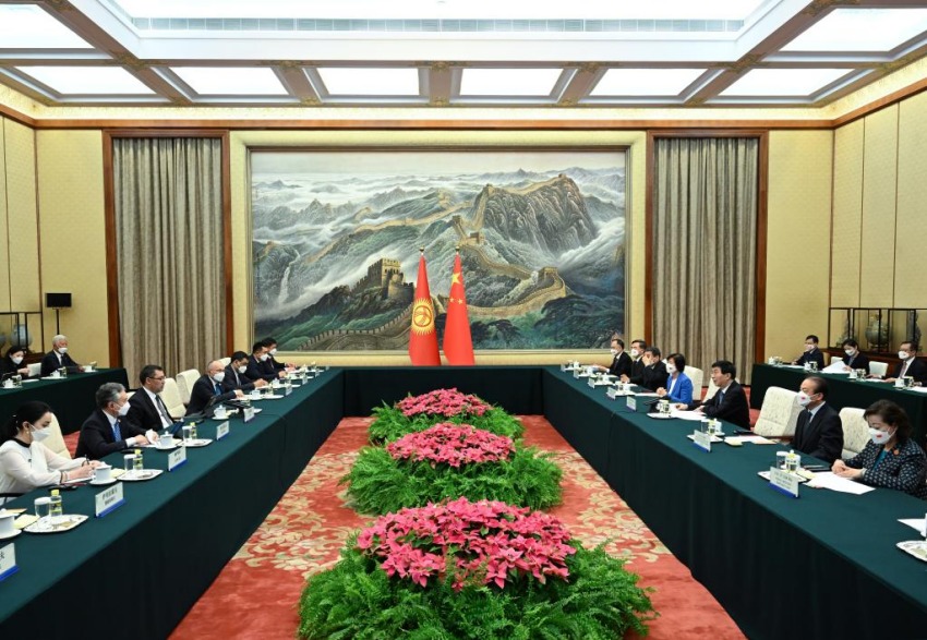 O principal conselheiro político da China, Wang Huning, reuniu-se na sexta-feira com o presidente quirguiz, Sadyr Japarov, em Beijing.