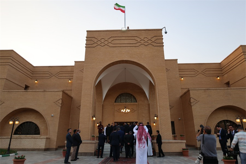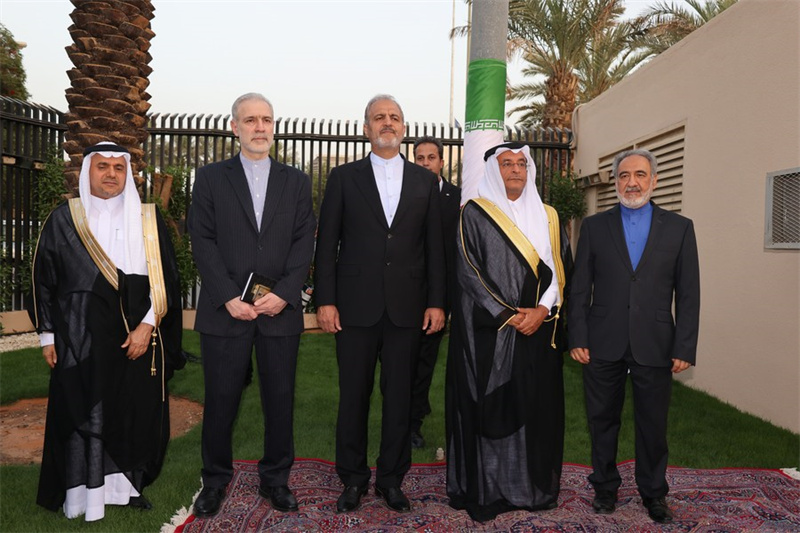Foto tirada em 6 de junho de 2023 mostra a reabertura da embaixada iraniana em Riade, na Arábia Saudita. (Xinhua/Wang Haizhou)