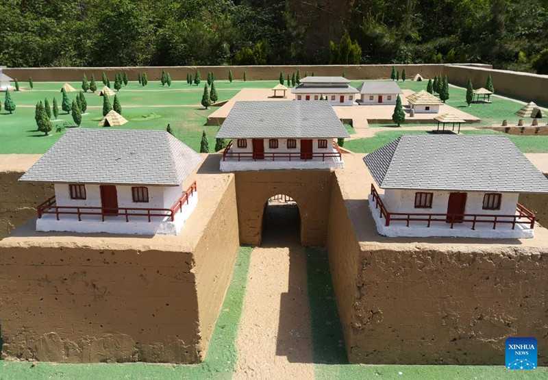 A foto tirada em 1 de maio de 2023 mostra um modelo em miniatura do sítio da relíquia Taosi no condado de Xiangfen, província de Shanxi, norte da China. (Xinhua/Wang Feihang)