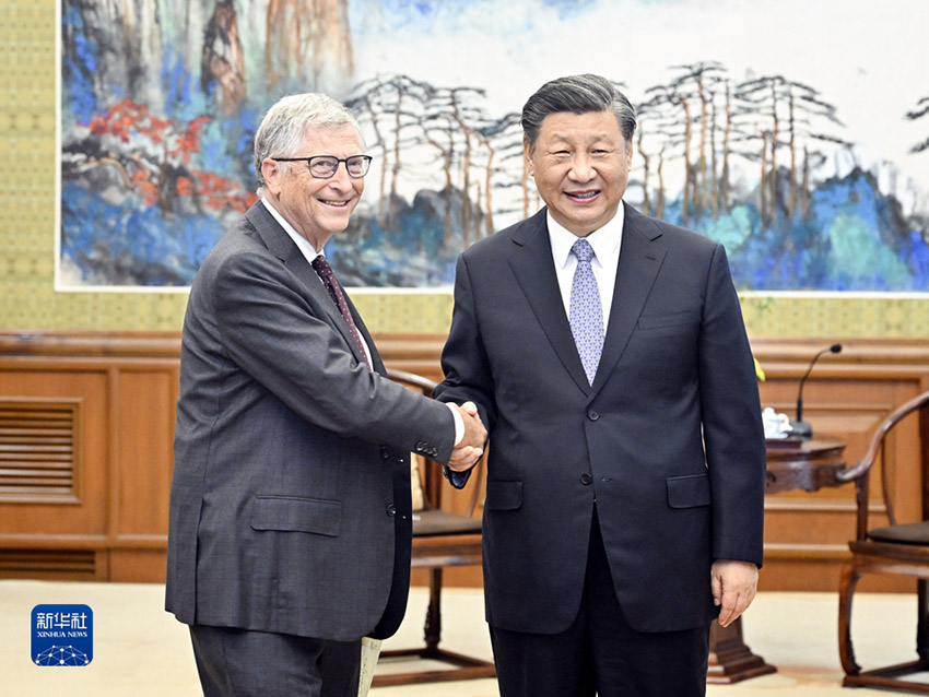 O presidente Xi Jinping esteve reunido com Bill Gates, co-presidente da Funda??o Bill & Melinda Gates, em Beijing, nesta sexta-feira.