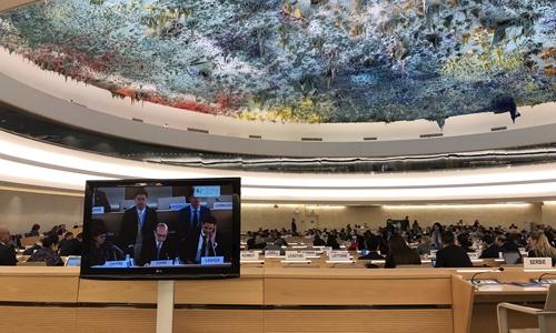 O embaixador Chen Xu, representante permanente da China no escritório das Na??es Unidas em Genebra e outras organiza??es internacionais na Suí?a, discursa durante a 43a sess?o do Conselho de Direitos Humanos da ONU. (Foto: Liu Xin/GT)