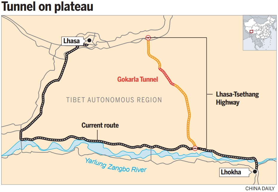 Conectando o município de Dechen, no distrito de Dagze, em Lhasa, e o município de Samye, no condado de Zhanang, na cidade de Lhokha, o Túnel de Gokarla é uma se??o fundamental da Rodovia Lhasa-Tsethang. A rodovia é uma das medidas importantes na cria??o de um círculo econ?mico de uma hora na parte central da regi?o, de acordo com a China Communications Construction Company, que construiu o projeto.