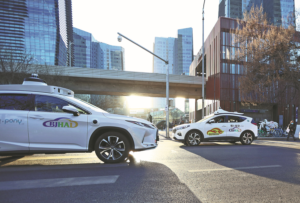 Os veículos aut?nomos da Baidu e Pony.ai s?o testados na rua em Yizhuang, no subúrbio ao sul de Beijing. (Foto: China Daily)