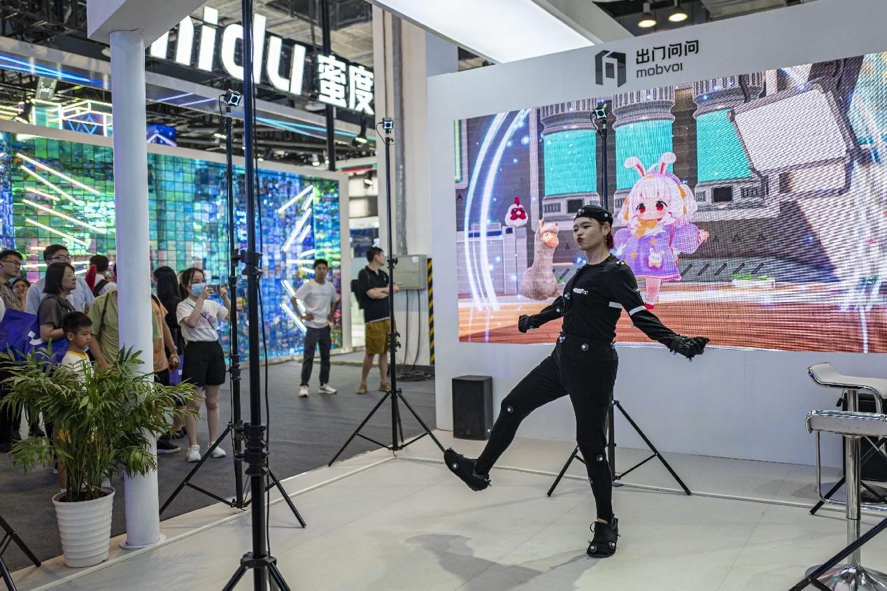 Demonstra??o de uma reprodu??o digital de ser humano por meio de captura de movimento durante a Conferência Mundial de Inteligência Artificial de 2023 em Shanghai, a 6 de julho. Foto de Wang Chu/Diário do Povo Online