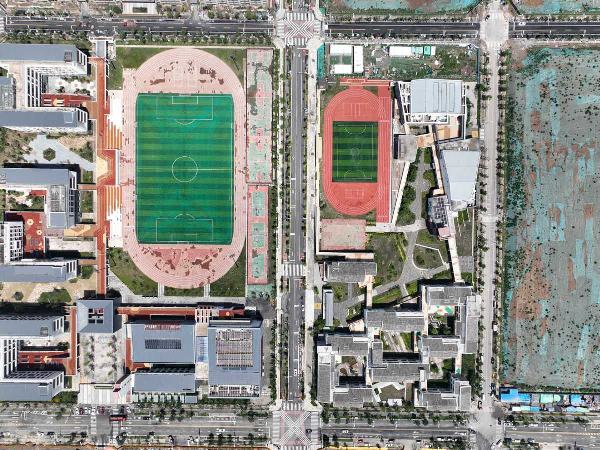 A foto mostra as instala??es das filiais da Escola Secundária No 4 de Beijing (à esquerda) e da Escola Primária Shijia Hutong de Beijing na Nova área de Xiong'an, província de Hebei, 4 de julho de 2023. [Xinhua]