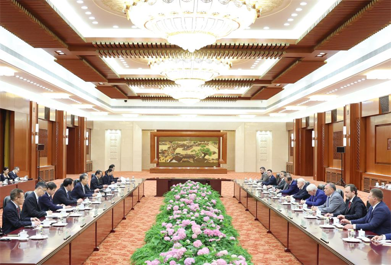 O chefe do Legislativo chinês, Zhao Leji, reuniu-se com uma delega??o de quadros do partido Uma Rússia Justa-Patriotas-Pela Verdade, em Beijing, nesta segunda-feira.