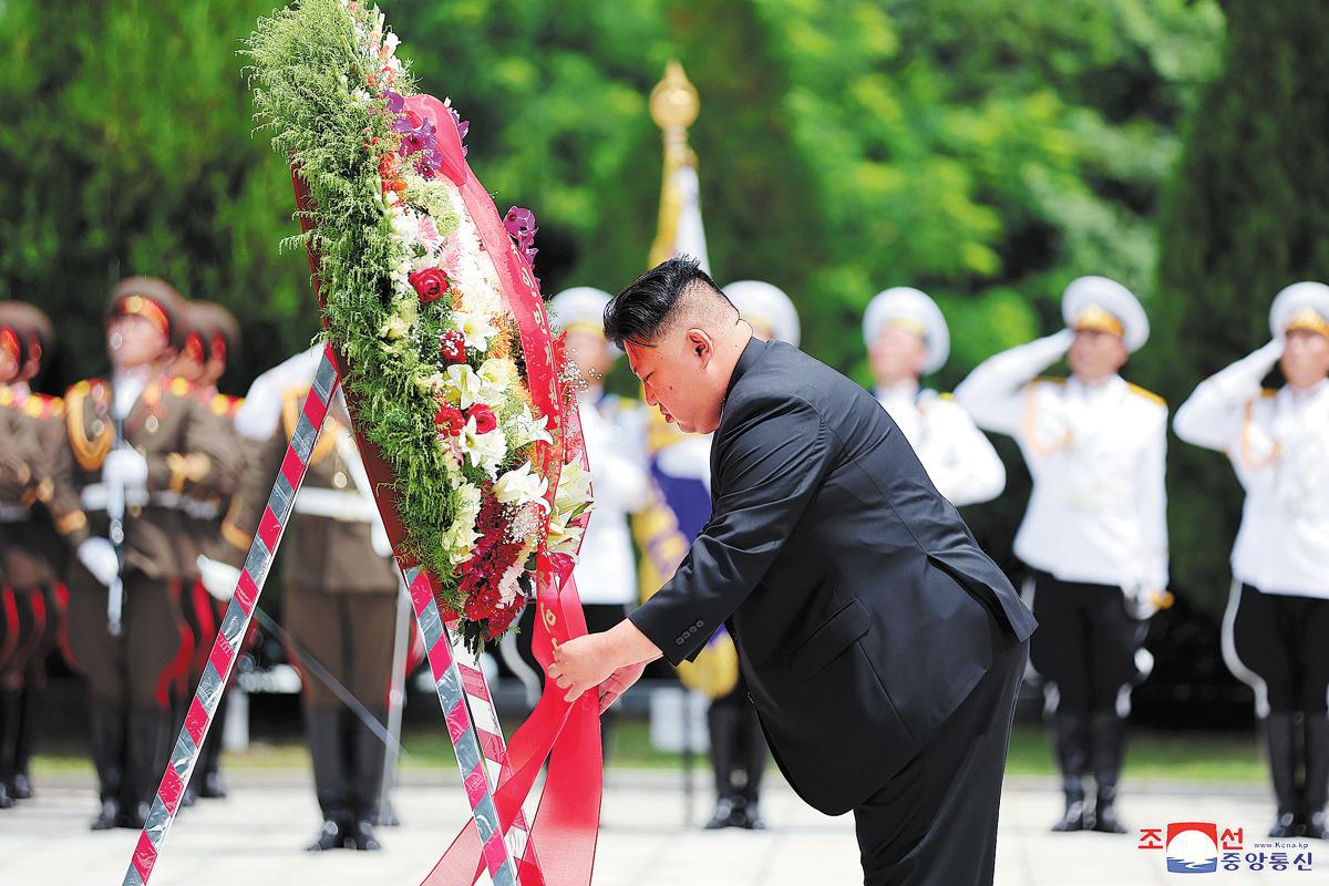 Kim, secretário-geral do Partido dos Trabalhadores da Coreia e presidente da Comiss?o de Assuntos de Estado da RPDC, depositou uma coroa de flores no cemitério dos mártires do CPV no condado de Hoechang, província de Pyongan do Sul, na ter?a-feira (25), informou a Agência Central de Notícias da Coreia (KCNA, na sigla em inglês).
