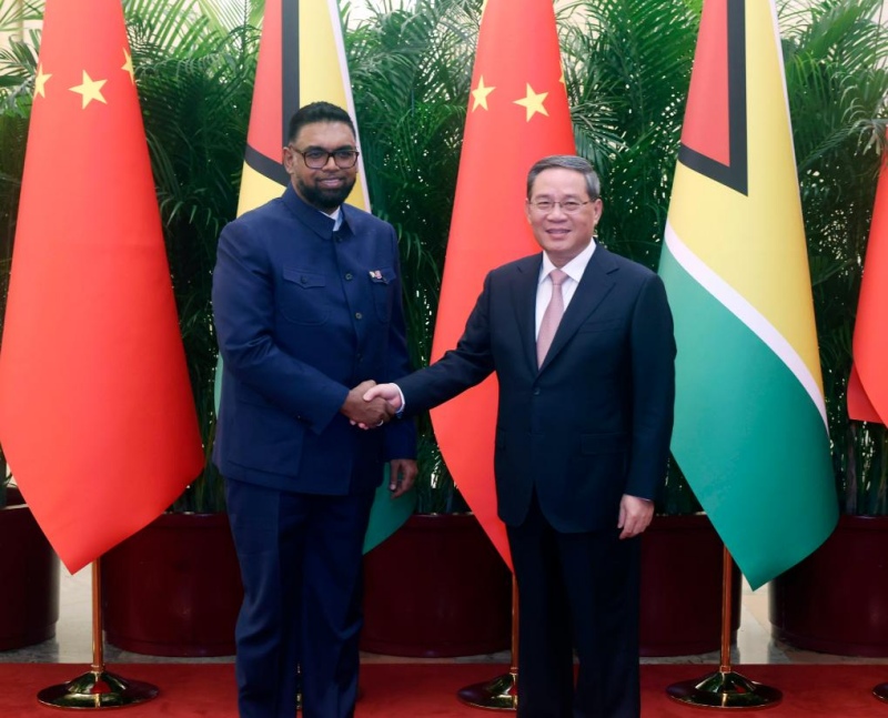 O primeiro-ministro chinês, Li Qiang, reuniu-se com o presidente da Guiana, Irfaan Ali, em Beijing, no domingo, dizendo que a China está disposta a trabalhar com a Guiana para promover as rela??es entre a China e os países do Caribe e salvaguardar conjuntamente os interesses comuns dos países em desenvolvimento.