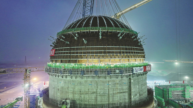 A cúpula da Unidade 3 da Usina Nuclear de Xudapu foi erigida em 25 de julho, em Huludao, província de Liaoning. [Foto/Xinhua]