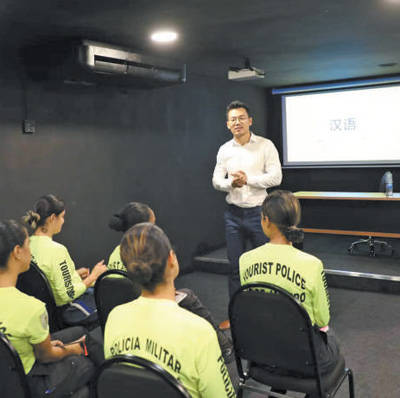 A fim de proteger melhor a seguran?a dos turistas chineses, há um pouco tempo foi iniciado oficialmente o Curso de Chinês da Polícia Turística do Rio, lan?ado em conjunto pela Delegacia Especial de Apoio ao Turismo (DEAT) do Rio e o Consulado-Geral da China no Rio. O curso de forma??o é dividido em 10 horas-aula e ministrado por professores do Instituto Confúcio da Pontifícia Universidade Católica do Rio de Janeiro (PUC-Rio).
