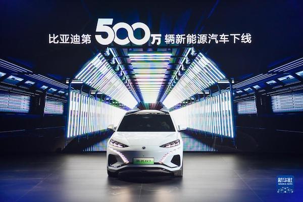 O quinto milionésimo veículo de nova energia (NEV, sigla em inglês) produzido pelo principal fabricante de NEVs da China, BYD, saiu da linha de produ??o na quarta-feira.