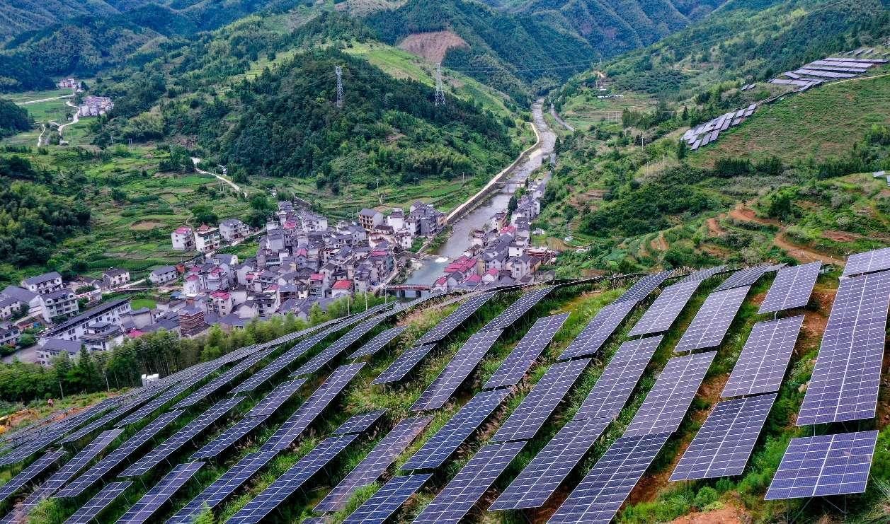 Projeto centralizado de gera??o de energia fotovoltaica na vila de Zhangcun, condado de Chun'an, Hangzhou. (Foto:Yang Bo/Diário do Povo Online)