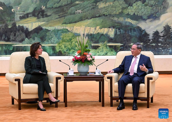 O primeiro-ministro chinês, Li Qiang, reuniu-se com a secretária de Comércio dos EUA, Gina Raimondo, na ter?a-feira em Beijing, pedindo que os dois lados aumentem a coopera??o mutuamente benéfica.