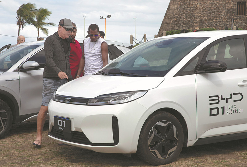 Veículo elétrico da BYD em Salvador, capital do estado da Bahia, Brasil, em 4 de julho. Foto: Wang Tiancong/Xinhua