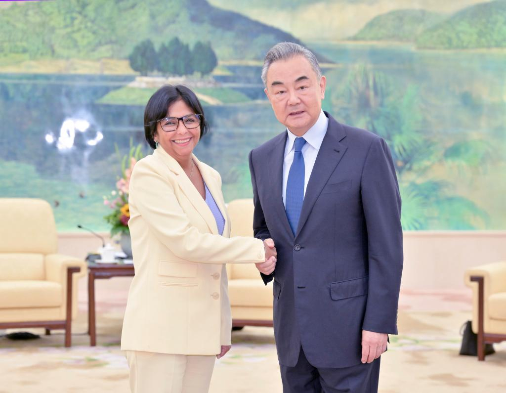 O ministro das Rela??es Exteriores da China, Wang Yi, se reuniu nesta quinta-feira com a vice-presidente venezuelana, Delcy Eloina Rodríguez Gomez, que está em Beijing para a 17a reuni?o do Comitê Misto de Alto Nível Venezuela-China.