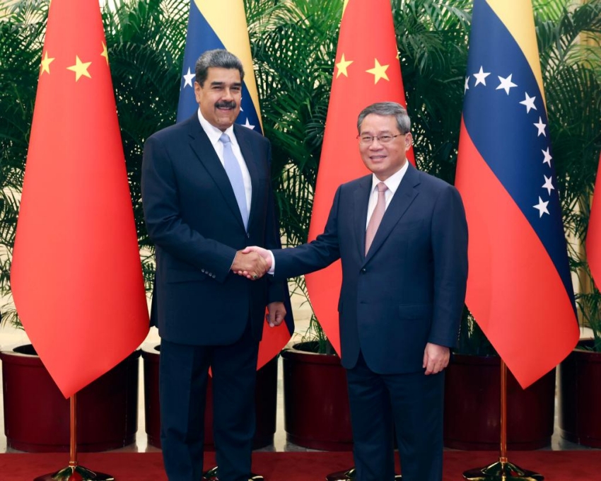 O primeiro-ministro chinês, Li Qiang, se reuniu com o presidente venezuelano, Nicolás Maduro Moros, que está em visita de Estado à China, no Grande Palácio do Povo na quinta-feira.