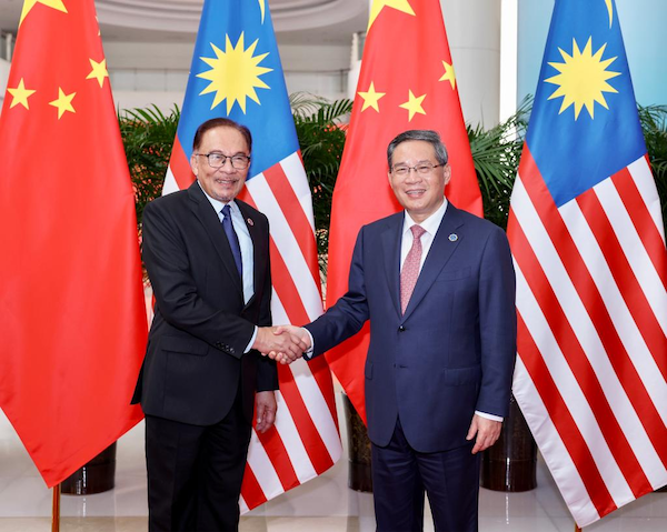 O primeiro-ministro chinês, Li Qiang, reuniu-se no domingo com o primeiro-ministro da Malásia, Datuk Seri Anwar Ibrahim, em Nanning, capital da Regi?o Aut?noma da Etnia Zhuang de Guangxi, no sul da China.