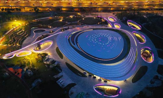 Abrangendo uma área de aproximadamente 80.000 metros quadrados, com 24 metros de altura e capacidade para 4.500 pessoas, o Hangzhou Esports Center se assemelha a uma nave espacial quando visto de cima, capturando perfeitamente a essência de e-sports com sua estética futurista.